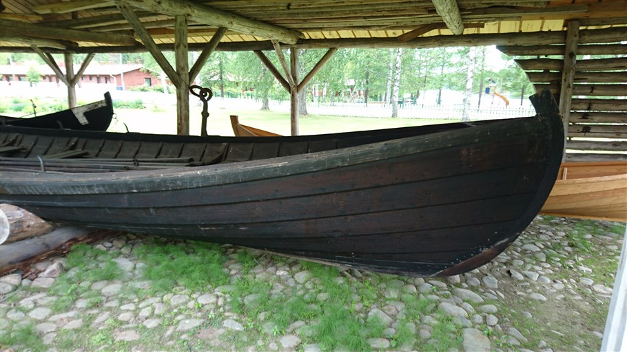 Kirkkovene Kuikassa oli seitsemän airoparia ja Rautalammin kirkkoveneistä se oli ainoa, jossa oli myös matkantekoa vauhdittanut purje. Kuikka Rautalammin museon ulkomuseoalueella. Kuva: Matleena Vepsäläinen/Rautalammin museo.